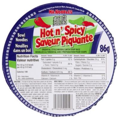 CN8989 : Mr. noodles CN8989 : Pâtes, riz et nouilles - Ramen - Ramen Saveur Piquante (bol) MR. NOODLES,RAMEN saveur piquante (BOL), 12 x 86G